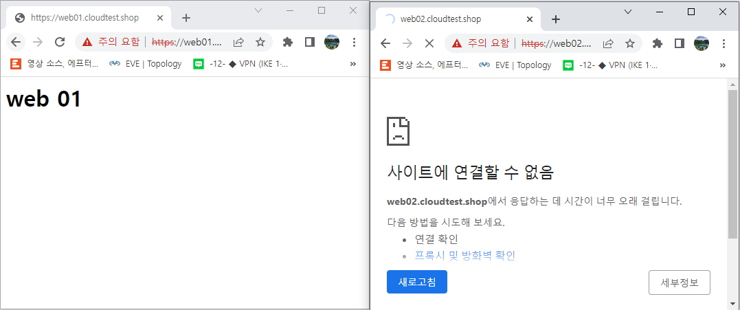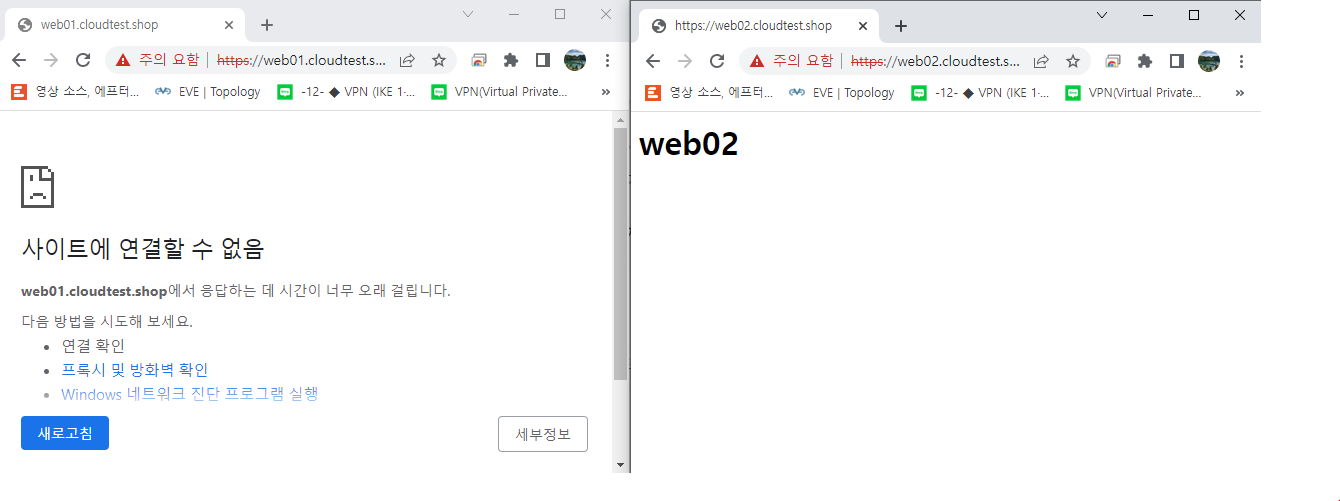 - 이상한점 : web02만 규칙적용하고 접속되는 것 확인.