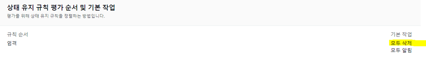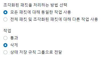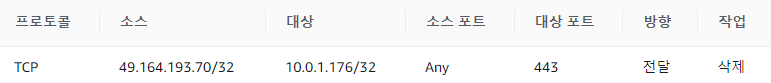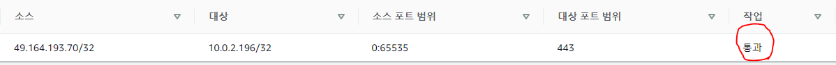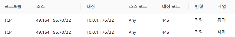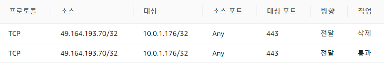- 동일규칙 삭제/통과 적용 (통과가 위에 있을 때)