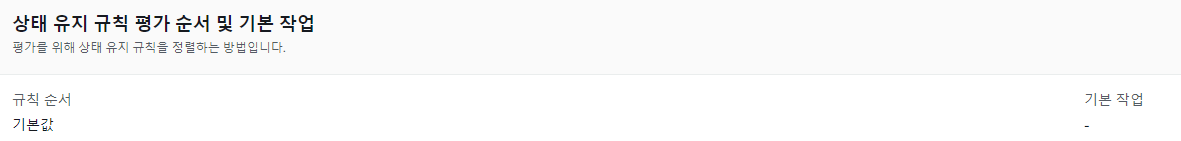 기본값(DEFAULT) : 묵시적 PASS, stateful 엔진의 규칙 평가 순서로 결정 (BLACKLIST)