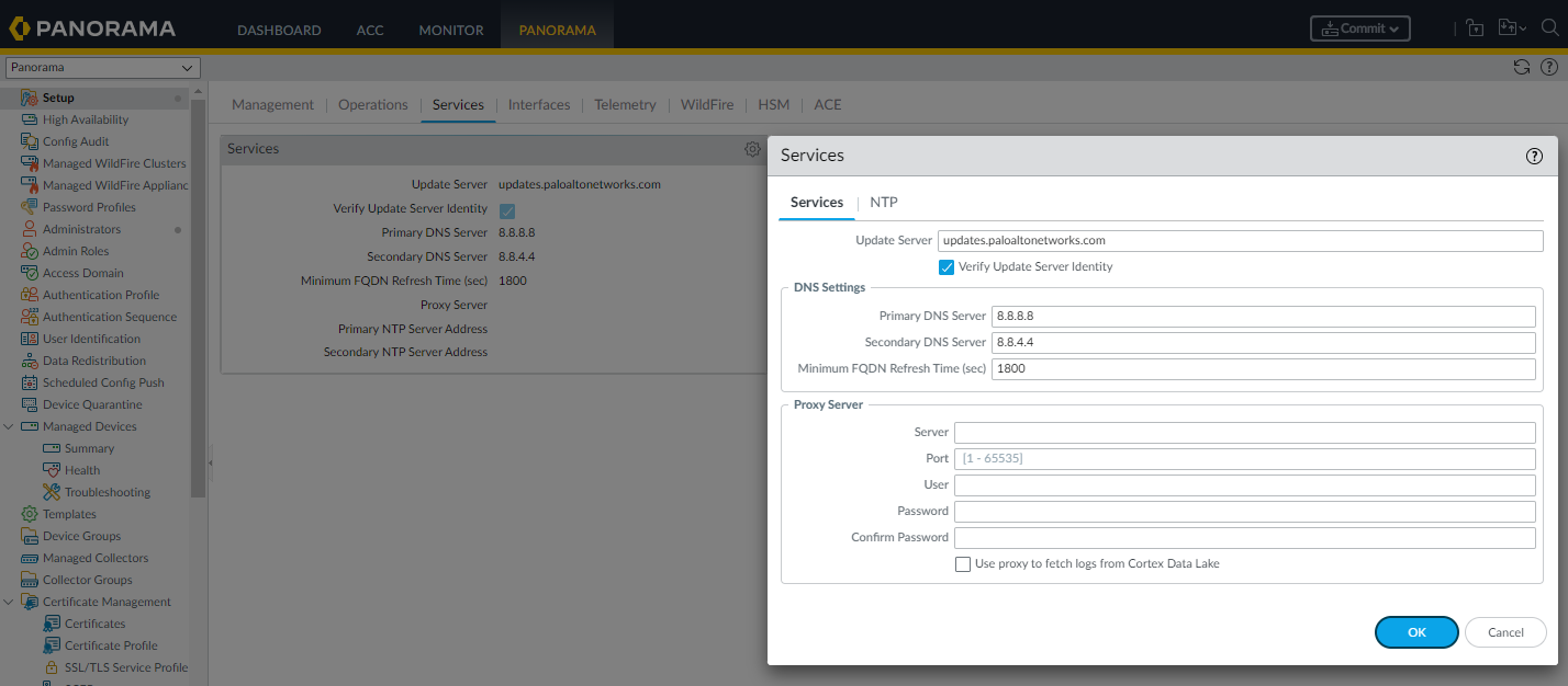 라이센스 등록을 위해 Panorama와 VM-Series 모두 업데이트 서버와 통신을 해야하며, 당연하게도 DNS 서버가 세팅이 되어 있어야 한다.
