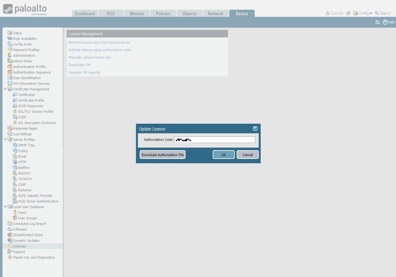 Serial Key도 등록해준다. Panorama 연동을 위해선 시리얼키가 필요하다.